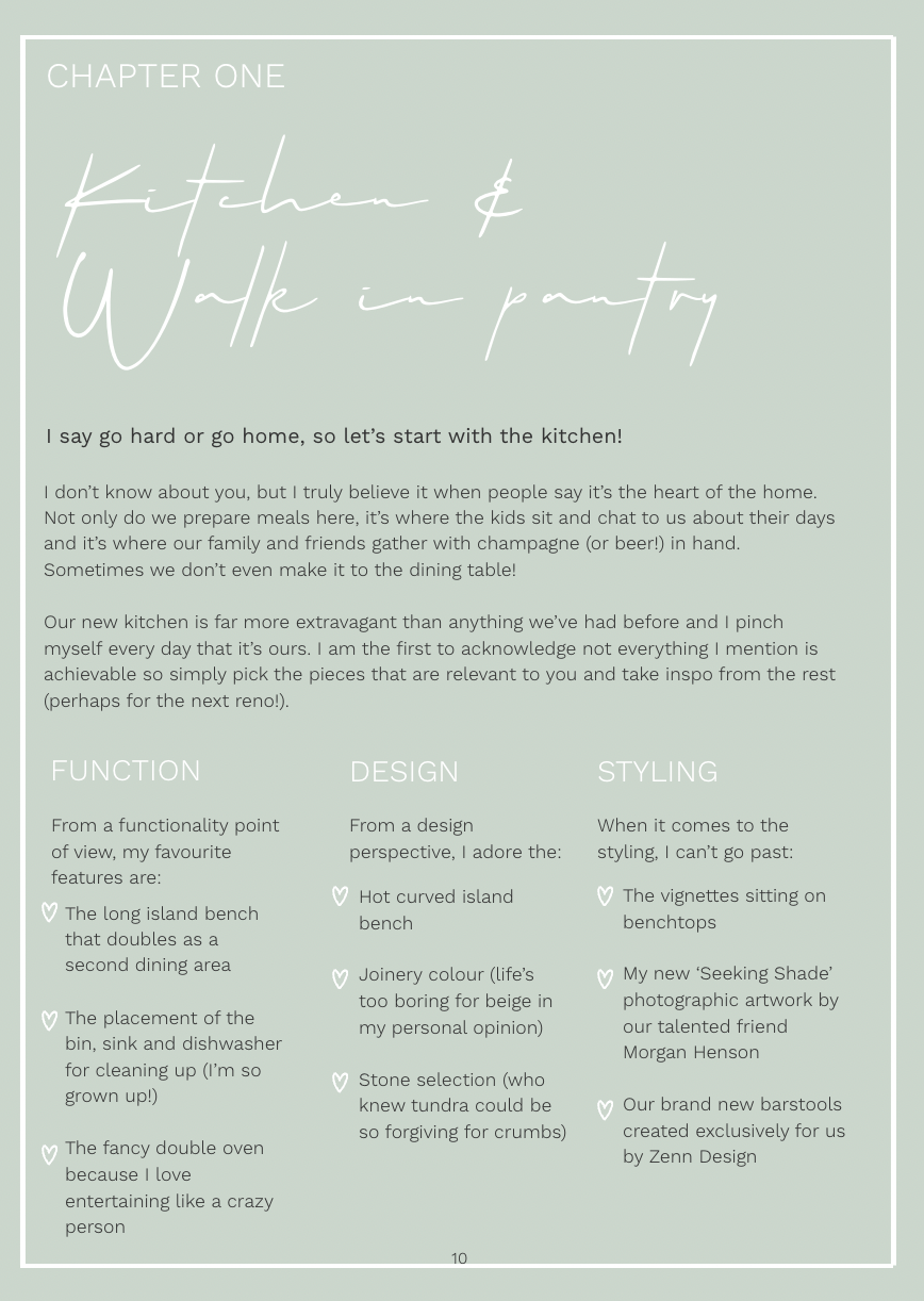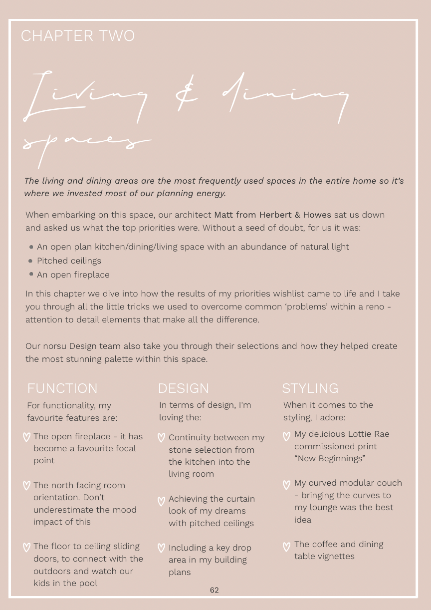 What makes this mag a little different is you’ll hear from two different perspectives - from “the owner - aka me” and you’ll hear from our talented team “the designers”. We believe the key to any successful renovation is finding the perfect balance between practicality  and aesthetics and yes I have messy kids and a playful Cavoodle!.