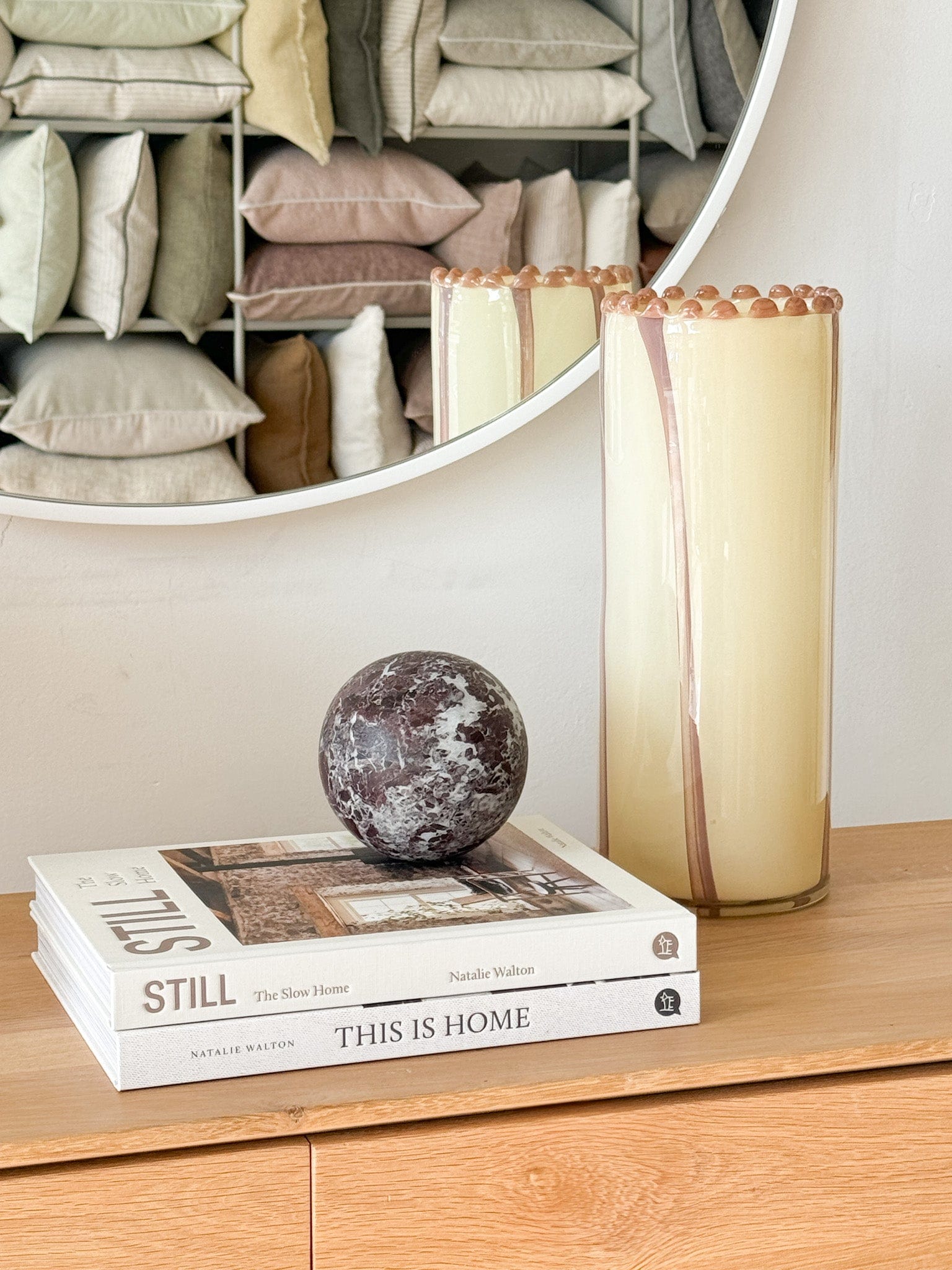 CoTheory Orbit Sphere Table Sculpture - Beige Travertine