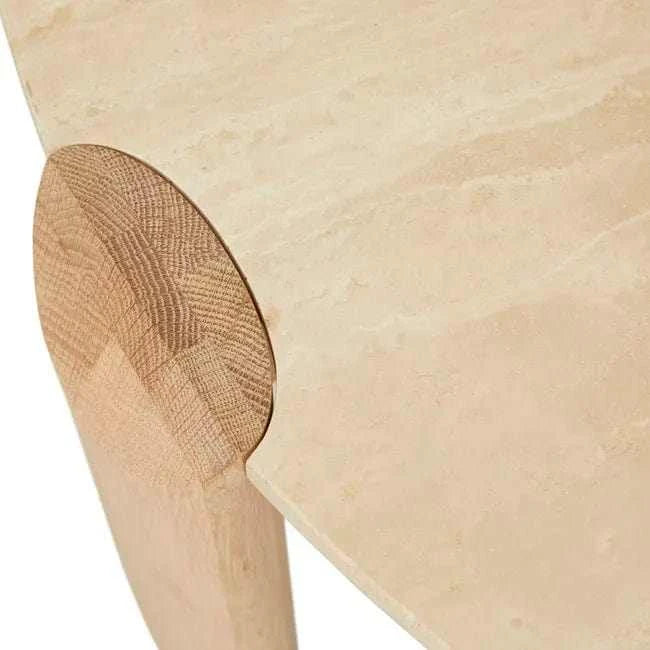 Willa Marble Coffee Table - Natural Travertine - Light Oak